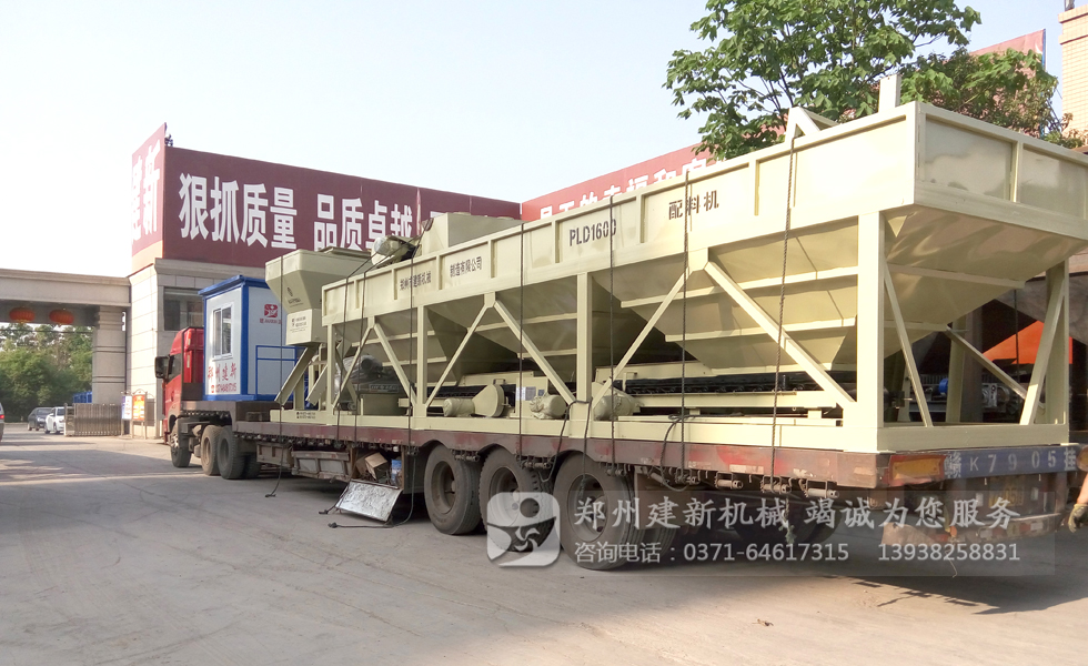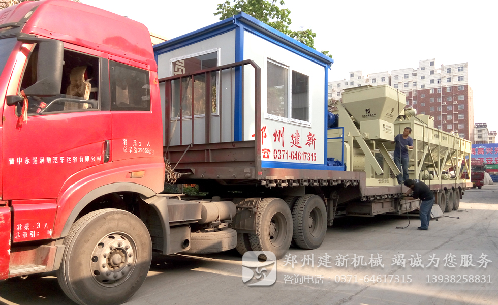 圖中顯示一套HZS50混凝土攪拌站已經(jīng)裝車完畢,正在做最后的檢查與固定工作,發(fā)貨清單中包含了一臺(tái)JS1000強(qiáng)制式混凝土攪拌機(jī),一臺(tái)空氣壓縮機(jī),控制室一個(gè),PLD1600混凝土配料機(jī)一套以及其它配套的組件。