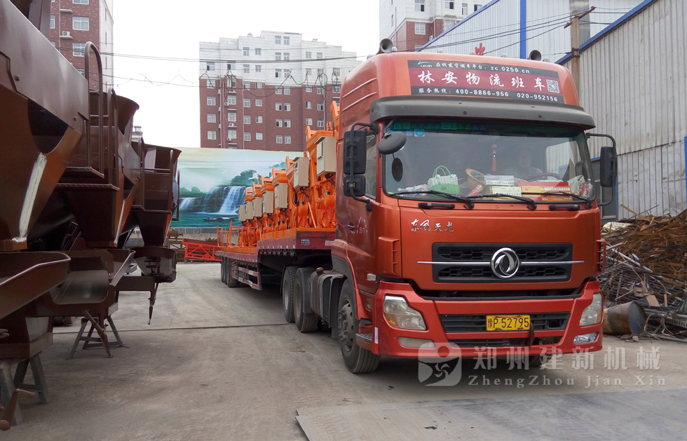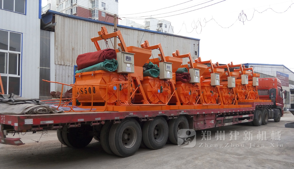 2015年7月13日,發(fā)往廣西的小型攪拌機準備出發(fā)。型號為JS500強制式攪拌機,數(shù)量為7臺。