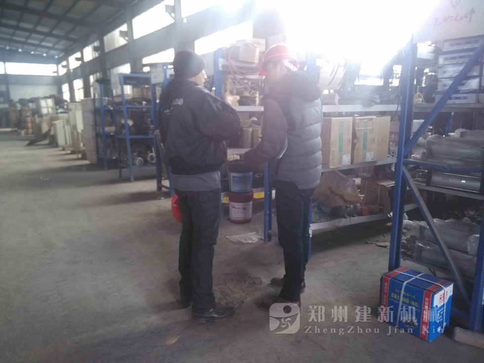 來自馬來西亞的客戶在建新公司外貿(mào)部楊經(jīng)理的帶下,參觀了建新公司的生產(chǎn)車間、倉庫等,對混凝土攪拌站的各種主要零部件、制作工藝、材質(zhì)等,作了詳細深入的了解。